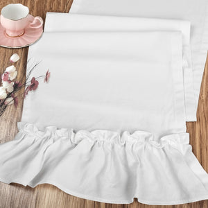 Ruffled Table Runner – Farmhouse Style with Frill Edge – Romantic Cottagecore Dining Decor